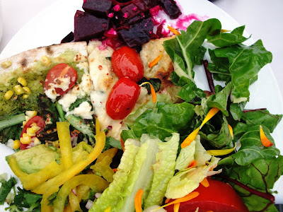 Dinner was touched with local foods grown on the same farm we dined on. Menu highlights: fig+brie+honey bruschetta, white bean + rosemary dip, pesto corn pizza, a trio of complimentary salads-beet and goat cheese, avocado and yellow pepper, gorgeous greens.